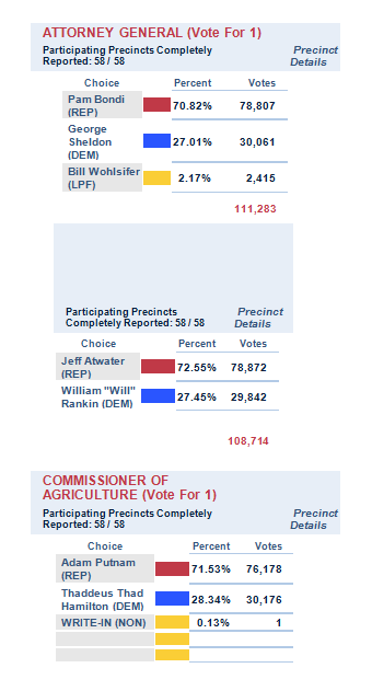 An estimate of a party's vote can be made by taking an average of the results of several offices. Usually it's best to use offices that are down the ballot and to look for similar results. For example here are some Collier County results for state-wide office: