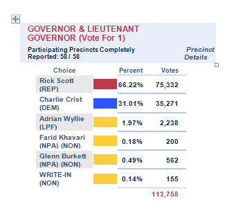 As you can see from this example Rick Scott ran fairly close to the Republican turnout number.Charlie Crist ran ahead of the Democratic turnout number. By using the relative strength tool a campaign can gage its' effectiveness relative to the party turnout in a given election. It is not unreasonable for a candidate to assume that they will get all of the votes from their party in an election. A good Get Out The Vote program is essential to winning any election. Candidates should have their own GOTV program rather than depend upon the party. While the party will be helpful to all of its' candidates on election day it can also be used as a benchmark to assess the effectiveness of a campaign.