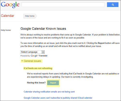 Google Product Forums which talk about this issues from 1/18/10 to at the time of this posting 1/11/13http://productforums.google.com/forum/#!msg/calendar/iXp8fZfgU2E/bcU8KeydUrIJ