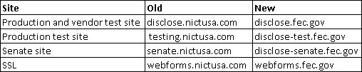 With the new release the FEC has made some changes to the upload locations.  They provided this table to us: