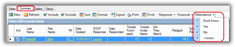 The Summary tab within Events has been updated to allow you to filter by attendance.