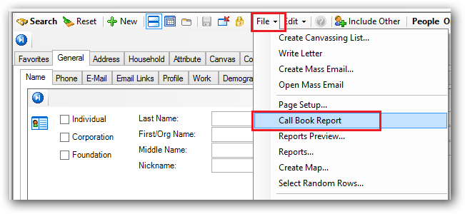 With today's release we have corrected the problem of Log Notes not printing on the Call Book report found in the File menu of the Voter/Donor Search tool strip.