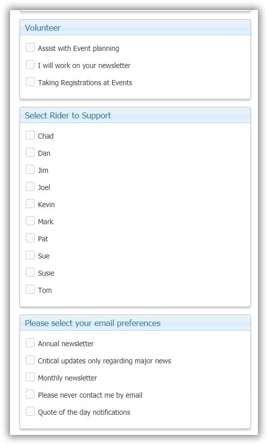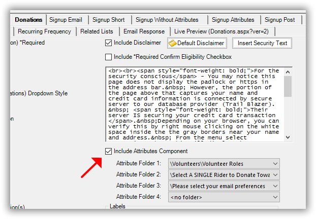For today's tip we are talking about how to add attributes (questions) to your Trail Blazer donation form.  This can be very useful for asking any number of questions from your donors, such as: